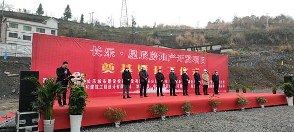 2021年1月26日上午,由必一·运动(B-Sports)官方网站承建的长乐▪星辰住宅项目奠基暨开工仪式在项目现场热烈举行。湖北省宜昌市五峰土家族自治县住房和城乡建设局副局长陈白华、县质量安全监督站站长邓简涛、必一·运动(B-Sports)官方网站五峰长乐▪星辰项目经理王国云,项目参建各方及新闻媒体共40余人出席。宜昌市长乐城市建设投资开发有限责任公司总经理刘鹏主持。